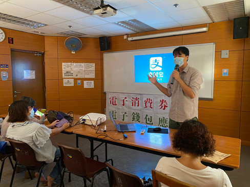 設街站及講座 協助登記政府$5000電子消費券民建聯2021年7月31日讀畢需時 1 分鐘2021.07政府向合資格居民發放5000元電子消費券,7月4日起接受登記。我們除了設立街站協助填寫表格外,社區幹事林偉明更在朗屏邨舉辦兩場電子消費券及電子錢包講座,為有疑問的街坊解難。