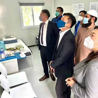 林琳議員聯同穆斯林總教長Muhammad Arshad、保安局首席助理秘書長謝振中、平機會委員利哲宏博士及香港回教信託基金總會榮譽秘書長艾歷斯,昨日(4月11日)到訪洪水橋方艙醫院,送上福袋及蜜棗並感謝工作人員為提供無微不至的服務。